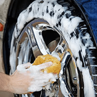 We strongly suggest doing your research before choosing a car wash if this is a convenience you can't live without. Ask the manager or owner exactly what they use to clean wheels and tires, and if they warranty their process. Many car washes have disclaimers about “not being held responsible for damages caused by their facility.” It's always better in the long run if you wash you wheels by hand.
