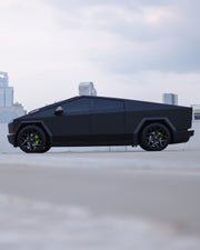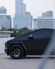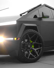 View the 4P06 wheel in 24x12 with 33x12.5x24 tires on this Tesla Cybertruck. Discover how these custom wheels enhance the look and performance of your Tesla Cybertruck Visit OE Wheels for more!