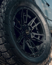 View the wheel in 20×9 with 33x12.5x20 tires on this Toyota Tundra. Discover how these custom wheels enhance the look and performance of your Toyota Tundra Visit OE Wheels for more!