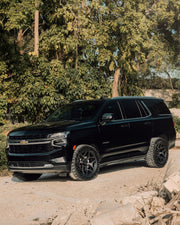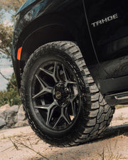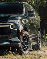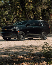 View the 4P06 wheel in 20x9 with 33X12.5X20 tires on this Chevrolet Tahoe. Discover how these custom wheels enhance the look and performance of your Chevrolet Tahoe Visit OE Wheels for more!