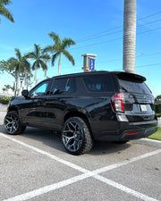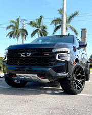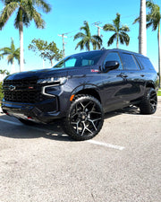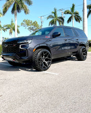 View the 4P06 wheel in 24x12 with 33X12.5X24 tires on this Chevrolet Tahoe. Discover how these custom wheels enhance the look and performance of your Chevrolet Tahoe Visit OE Wheels for more!
