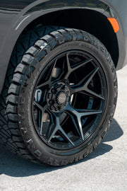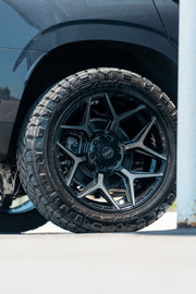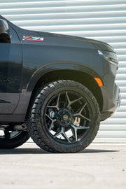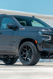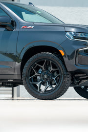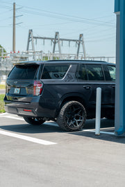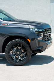 View the 4P06 wheel in 22X10 with 285X50X22 tires on this Chevrolet Tahoe. Discover how these custom wheels enhance the look and performance of your Chevrolet Tahoe Visit OE Wheels for more!