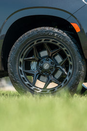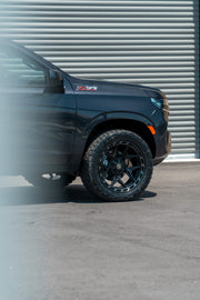 View the 4P55 wheel in 22X10 with 33X12.5X22 tires on this Chevrolet Tahoe. Discover how these custom wheels enhance the look and performance of your Chevrolet Tahoe Visit OE Wheels for more!