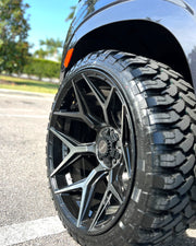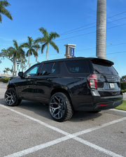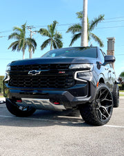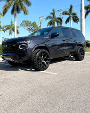 View the 4P06 wheel in 24x12 with 33X12.5X24 tires on this Chevrolet Tahoe. Discover how these custom wheels enhance the look and performance of your Chevrolet Tahoe Visit OE Wheels for more!