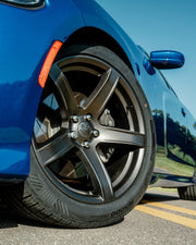 View the wheel in 20x9.5 on this Dodge Charger. Discover how these custom wheels enhance the look and performance of your Dodge Charger Visit OE Wheels for more!