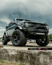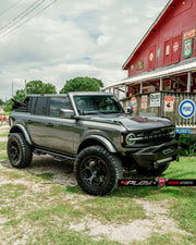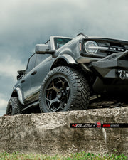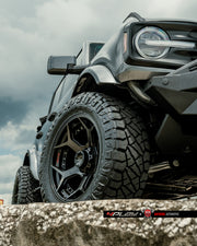 View the 4P50 wheel in 22X10 with 37X12.5X22 Nitto tires on this 2022 Ford Bronco. Discover how these custom wheels enhance the look and performance of your Ford Bronco Visit OE Wheels for more!