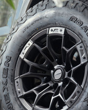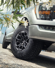 View the wheel in 17×9 with 285X75X17 tires on this Ford F-150. Discover how these custom wheels enhance the look and performance of your Ford F-150 Visit OE Wheels for more!