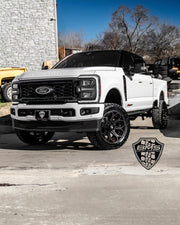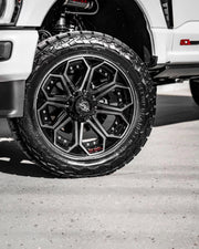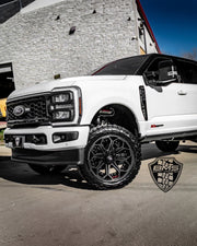 View the wheel in 22X10 with 35X12.5X22 tires on this Ford F-250. Discover how these custom wheels enhance the look and performance of your Ford F-250 Visit OE Wheels for more!