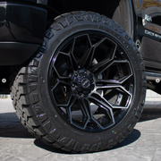 View the 4P06 wheel in 22x12 with 35X12.5X22 tires on this GMC Sierra 1500. Discover how these custom wheels enhance the look and performance of your GMC Sierra 1500 Visit OE Wheels for more!