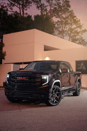 View the 4P06 wheel in 24x10 with 285x40x24 tires on this GMC Sierra 1500. Discover how these custom wheels enhance the look and performance of your GMC Sierra 1500 Visit OE Wheels for more!