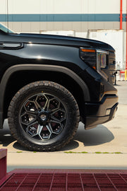 View the wheel in 20x9 with 33x12.5x20 tires on this GMC Sierra 1500. Discover how these custom wheels enhance the look and performance of your GMC Sierra 1500 Visit OE Wheels for more!