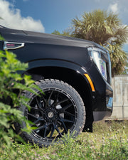 GMC Yukon 4PLAY Wheels S28 22x10 Rims 285x45x22 Sailun Tires Stock Suspension