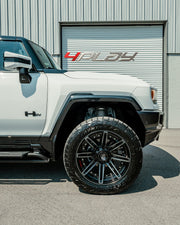 View the wheel in 22X10 with 35x12.5x22 tires on this Hummer EV. Discover how these custom wheels enhance the look and performance of your Hummer EV Visit OE Wheels for more!