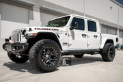 View the 4P55 wheel in 20x12 with 35X12.5X20 Toyo tires on this 2021 Jeep Gladiator. Discover how these custom wheels enhance the look and performance of your Jeep Gladiator Visit OE Wheels for more!