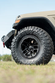 View the wheel in 17×9 with 35X12.5X17 tires on this Jeep Gladiator. Discover how these custom wheels enhance the look and performance of your Jeep Gladiator Visit OE Wheels for more!