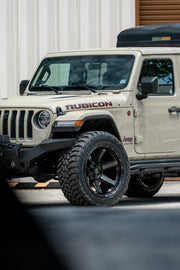 View the wheel in 22x12 with 35X12.5X22 tires on this Jeep Gladiator. Discover how these custom wheels enhance the look and performance of your Jeep Gladiator Visit OE Wheels for more!