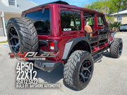 View the 4P50 wheel in 22x10 with 35X12.5X22 Federal tires on this 2021 Jeep Wrangler. Discover how these custom wheels enhance the look and performance of your Jeep Wrangler Visit OE Wheels for more!