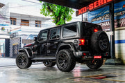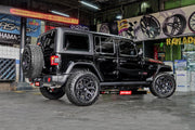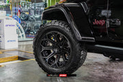 View the 4P80 wheel in 20x10 with 305X55X20 BF Goodrich tires on this 2021 Jeep Wrangler. Discover how these custom wheels enhance the look and performance of your Jeep Wrangler Visit OE Wheels for more!