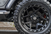 View the 4P55 wheel in 20x10 with 33X12.5X20 tires on this Jeep Wrangler. Discover how these custom wheels enhance the look and performance of your Jeep Wrangler Visit OE Wheels for more!