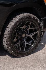 View the 4P06 wheel in 22x10 with 285X50X22 tires on this Dodge Ram 1500. Discover how these custom wheels enhance the look and performance of your Dodge Ram 1500 Visit OE Wheels for more!