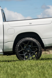 View the 4P06 wheel in 22x12 with 33X12.5X24 tires on this Dodge Ram 1500. Discover how these custom wheels enhance the look and performance of your Dodge Ram 1500 Visit OE Wheels for more!