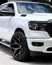 View the 4P06 wheel in 24x12 with 33X12.5X24 tires on this Dodge Ram 1500. Discover how these custom wheels enhance the look and performance of your Dodge Ram 1500 Visit OE Wheels for more!