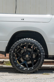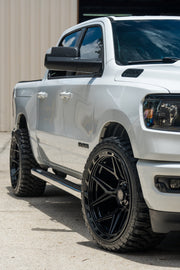 View the 4P55 wheel in 22x12 with 33X12.5X24 tires on this Dodge Ram 1500. Discover how these custom wheels enhance the look and performance of your Dodge Ram 1500 Visit OE Wheels for more!