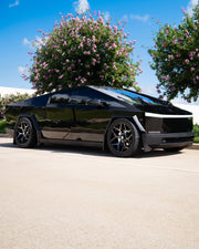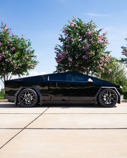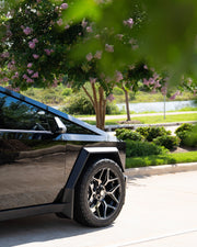 View the 4P06 wheel in 24x10 with 295x45x24 tires on this Tesla Cybertruck. Discover how these custom wheels enhance the look and performance of your Tesla Cybertruck Visit OE Wheels for more!