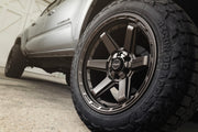 View the wheel in 20x10 with 275X55X20 tires on this Toyota Tacoma. Discover how these custom wheels enhance the look and performance of your Toyota Tacoma Visit OE Wheels for more!