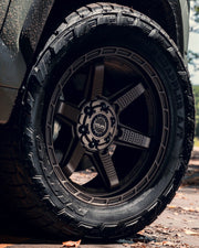 View the wheel in 20×9 with 33x12.5x20 tires on this Toyota Tundra. Discover how these custom wheels enhance the look and performance of your Toyota Tundra Visit OE Wheels for more!